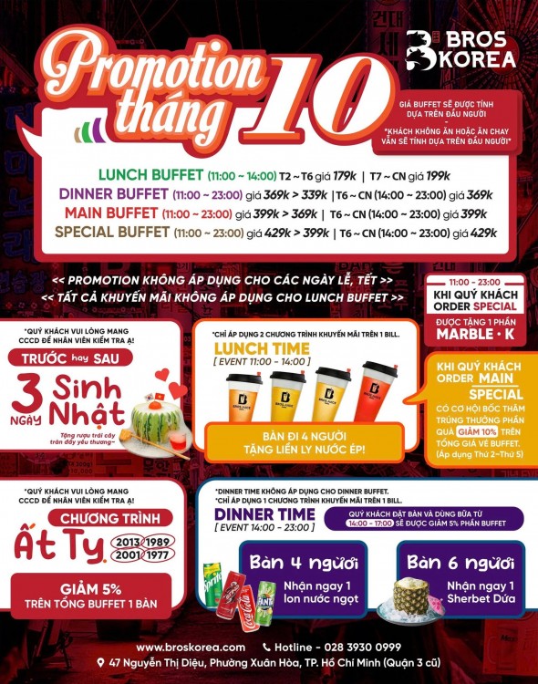 10월 프로모션 프로그램 - BROS KOREA 레스토랑